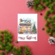 Tarjeta navideña navideña de feriado de Relieve metalizado dorado en invierno