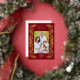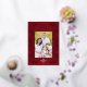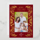 Esta tarjeta de Navidades verticales cuenta con un elegante borde de Relieve metalizado dorado de vegetación en un fondo rojo oscuro.