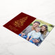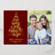 Esta elegante tarjeta de vacaciones para Navidades cuenta con 2 de sus fotos favoritas e imagen de texto "Joy Peace Holly & Jolly Merry & Bright" en Relieve metalizado dorado. En la parte trasera hay copos de nieve dorados que enmarcan la segunda foto con un fondo rojo oscuro. Fácil de personalizar.