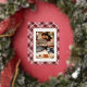 Tarjeta Festiva Con Relieve Metalizado Feliz Navidad Rosa Plátano Rojo Tartán Foto