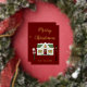 Una tarjeta de vacaciones de Relieve metalizado perfecta, este diseño presenta "Feliz Navidad" con hermosas letras de Relieve metalizado. Hay una casa nevada en el fondo con el nombre de tu familia en la parte inferior, también en letras de Relieve metalizado. ¡Pida hoy tu tarjeta de Navidades de Relieve metalizado!