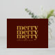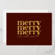 Esta carta festiva tiene el texto Merry, Merry, Merry y Navidades en Relieve metalizado de oro. Esta tarjeta de estilo clásico y retro le da un toque personalizado hermoso y brillante a sus saludos de temporada. (El color rojo de fondo puede cambiarse según sus preferencias, sólo vaya al área de personalización.)