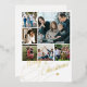 Elegante lujo Feliz Navidad real Relieve metalizado oro clásico guión de caligrafía seis fotos familiares simple tarjeta de vacaciones blancas con tu personalizado texto personalizado en ambos lados. ++++++++ OBSERVE que el color de fondo es modificable. Puede cambiarlo después de seleccionar la opción PERSONALIZAR debajo del menú PERSONALIZAR TI. Si no se siente a gusto cambiándolo, por favor pida ayuda a Zazzle Live Design Service o al diseñador. El color del Relieve metalizado también es cambiante: se puede elegir oro, plata o oro rosa.