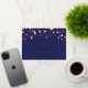 Una fiesta de moda Save the Date para una fiesta de cumpleaños número 40 (o cualquier edad). Un fondo azul marino decorado con estrellas de oro rosa. Personalice y agregue una fecha y un nombre/edad. El texto: Save the Date se escribe con un gran guión de estilo escrito a mano. El texto está escrito con Relieve metalizado plateado real.
