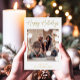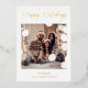 Esta carta de Navidades simple y moderna dice "Felices Fiestas" en la elegante tipografía de guion de Relieve metalizado dorado estilo firma. Añade cinco de tus fotos familiares favoritas a la parte delantera y trasera de la tarjeta para obtener un resultado impresionante.