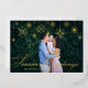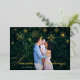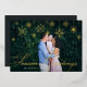 Un diseño de tarjeta de vacaciones elegante y clásico que presenta una foto horizontal o de orientación apaisada de sangrado completo, con un borde de copo de nieve de pan de oro en la parte superior. "Saludos de Temporada" aparece en letra de caligrafía tradicional. Personalice con el nombre de su familia y el año en letra blanca, y agregue una segunda foto al reverso.
