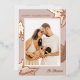 Celebre la temporada con esta moderna y elegante tarjeta de felicitación navideña con bello marco de follaje dibujado a mano y una tipografía de escritura clásica y elegante en Relieve metalizado de oro rosa. El diseño es totalmente personalizable: puede cambiar el color de fondo, el color del texto, incluso el color del Relieve metalizado. Elija esta plantilla y cree su tarjeta de vacaciones de Relieve metalizado real única para amigos y familia!
