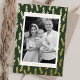 Carta moderna de Acción de Gracias con tu foto enmarcada en blanco con un fondo de verde oliva oscuro y follaje de Relieve metalizado dorado. Personalice la tarjeta de Acción de Gracias de Relieve metalizado con su saludo personalizado, nombre de familia y año en negrita con letras de Relieve metalizado de oro. La foto tarjeta de Acción de Gracias se revierte para mostrar el mensaje de su personalizado con letras blancas con fondo verde.