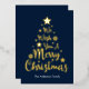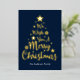 Le deseamos una Feliz Navidad con un tipo de letra en forma de guion en una tarjeta de Navidades de Relieve metalizado oro en forma de árbol. Si lo desea, puede introducir el nombre de su familia y cambiar el color de fondo azul oscuro.