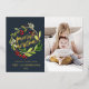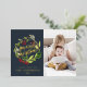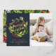 Tarjeta de Navidad con foto floral de acuarela azul marino, roja y verde con tipografía minimalista elegante moderna y foil festivo. Parte de una colección.