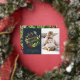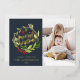 Tarjeta Festiva Con Relieve Metalizado Foto botánica de Navidad azul marino elegante mode