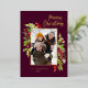 Tarjeta Festiva Con Relieve Metalizado Foto burgundy elegante follaje feliz Navidad