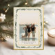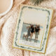 Tarjeta de vacaciones de papel de aluminio con 2 fotos y marco de pino, vegetación en acuarela.