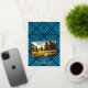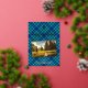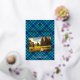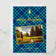 Tarjeta Festiva Con Relieve Metalizado Foto de Cuadros Verdes y Azules Festivos