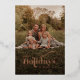 Tarjeta de felicitaciones de fiestas con elegante letra en Rose Gold puedes añadir fácilmente la foto de tu familia y un mensaje personalizado en el reverso haciendo clic en el botón "Personalizar".