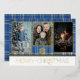 Tarjeta Festiva Con Relieve Metalizado Foto de Feliz Navidad de Cuadros Escoceses Azul y