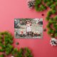Cuta y moderna tarjeta de fotos de Halloween que presenta "Halloween feliz" en escritura de Relieve metalizado dorado con letras a mano. Personalice la tarjeta de Relieve metalizado dorado Halloween con su foto horizontal y su nombre familiar. La parte posterior de la tarjeta muestra un patrón geométrico en blanco y negro, añadiendo un toque lúdico y elegante. Perfecto para enviar saludos festivos a amigos, familia y seres queridos durante la espeluznante temporada.