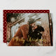 Esta moderna y vibrante tarjeta de Navidades muestra tu foto personal en la parte delantera, con un moderno guión en blanco, y un rico patrón de puntos polka en la parte trasera. Foto de plantilla a través de Pixabay bajo licencia CC0 y debe ser reemplazada por su propia foto