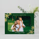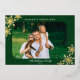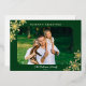Una elegante tarjeta de felicitación navideña que presenta un marco de foto horizontal con esquinas redondeadas acentuadas con auténtico foil dorado sobre un fondo verde oscuro.