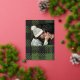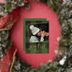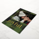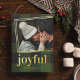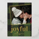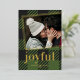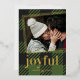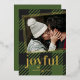 Clásicas tarjetas de vacaciones de navidades de Relieve metalizado real que incluyen una foto familiar con un diseño de borde blanco contemporáneo de 2 bordes, un fondo de manto verde y negro, la bella palabra "alegre" en un elegante tipo de Relieve metalizado dorado, sus nombres y el año.