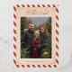 Celebra la magia de la temporada navideña con nuestra caprichosa tarjeta de foto de Relieve metalizado de Navidades del North Pole Express. Diseñada para parecerse a un delicioso billete de tren al Polo Norte, esta tarjeta le dará un toque de diversión festiva a sus saludos de vacaciones. La tarjeta tiene un encantador borde de rayas de caña de caramelo rojo y blanco y rayas de Relieve metalizado dorado, que evocan el dulce y alegre espíritu de los Navidades. Personalizar de la tarjeta de Navidades de billetes de tren North Pole Express con tus fotos familiares favoritas, el año, y un mensaje personal de bienvenida de temporada para hacerlo verdaderamente único. Diseño original y ilustraciones de Moodthology Papery