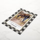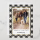 Envíe saludos de vacaciones a amigos y familiares con nuestras elegantes tarjetas de fotos rústicas con un patrón de manto azul marino y búfalo negro enmarcando su foto favorita vertical. Personaliza con dos líneas de texto personalizado; se muestra con "Navidades más bonitos" y tu apellido. El guarnecido de Relieve metalizado dorado añade un toque de lujo a este diseño festivo.
