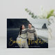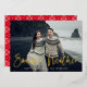 Tarjeta de vacaciones festiva con tu foto horizontal con "Sweater Weather" mostrada en un Relieve metalizado dorado sobrepuesto. Personalice la parte delantera de la tarjeta de vacaciones de Relieve metalizado con un saludo personalizado y su nombre. La parte posterior de la tarjeta presenta un patrón de suéter nórdico de copos de nieve rojo y blanco.