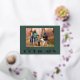 Bordes de auténtico foil dorado enmarcan tu foto favorita y las palabras Felices Fiestas en letras de foil dorado chic están en la parte frontal de estas tarjetas de felicitación navideñas de color verde oscuro y tu mensaje y nombres en la parte trasera. Asegúrate de revisar tu pedido antes de añadirlo al carrito, ya que lo que ves en pantalla es lo que se imprimirá. El Servicio de Diseño en Vivo puede ayudarte con el diseño de tu tarjeta si es necesario.