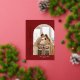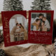 Tarjeta Festiva Con Relieve Metalizado Foto elegante de arco rojo familia Navidad