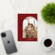 Esta tarjeta de vacaciones presenta un diseño simple y elegante y una foto arqueada. Esta hermosa tarjeta de Navidad moderna minimalista permite subir una sección con tu propia imagen perfecta al frente y atrás.