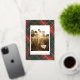 Tarjeta Festiva Con Relieve Metalizado Foto elegante tradicional de cuadros rojos y verde