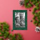Navidades de fotografía familiares modernos elegante guión Relieve metalizado verde tarjeta de vacaciones. Consejos para la foto: tu foto se convertirá automáticamente a Blanco y Negro después de ser subida.