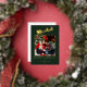 Tarjeta Festiva Con Relieve Metalizado Foto familiar de trineo de Santa Alegre y Brillant