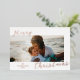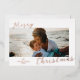 Tarjeta de Navidades modernos que presenta un diseño simple y mínimo con "Feliz Navidad" en una divertida tipografía de escritura que se superpone ligeramente a tu foto favorita de paisajes. Todo el texto en la parte delantera está impreso en Relieve metalizado real. La parte trasera tiene dos imágenes adicionales junto con tu mensaje personalizado en blanco y negro.