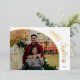 Feliz Navidad en curvas de papel de oro real alrededor de tu foto favorita en una escritura elegante en la parte frontal de estas tarjetas de felicitación de Navidad. Tu mensaje personal y nombres están en la parte trasera. Asegúrate de verificar tu pedido antes de agregarlo al carrito, ya que lo que ves en la pantalla es lo que se imprimirá.