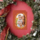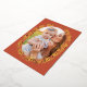 Tarjeta Festiva Con Relieve Metalizado Foto ovalada con marco retro de poinsettia roja
