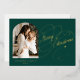 Elegante elegante Feliz Navidad real oro clásico guión de caligrafía familia foto tarjeta de vacaciones verde con tu personalizado texto personalizado en ambos lados. ++++++++ OBSERVE que el color de fondo es modificable. Puede cambiarlo después de seleccionar la opción PERSONALIZAR debajo del menú PERSONALIZAR TI. Si no se siente a gusto cambiándolo, por favor pida ayuda a Zazzle Live Design Service o al diseñador. El color del Relieve metalizado también es cambiante: se puede elegir oro, plata o oro rosa.