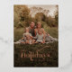 Tarjeta Festiva Con Relieve Metalizado Foto Rustic Happy Holidays