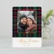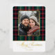 Tarjeta Festiva Con Relieve Metalizado Foto Rustic Plaid de Feliz Navidad