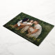 Crea tus tarjetas fotográficas de vacaciones rápida y fácilmente con este diseño sencillo y elegante. La tarjeta muestra tu foto horizontal o paisajística favorita en todo el sangrado, con "alegría para el mundo" colocada en letras de Relieve metalizado dorado. Personaliza con tus nombres y el año que pasa abajo. Las tarjetas cambian a un patrón geométrico de árbol moderno en verde y blanco del bosque oscuro.