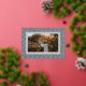 Una mezcla de boho y lujo, plata y azul, esta impresionante tarjeta de vacaciones con lámina metálica enmarca tu foto con estrellas dibujadas a mano con un gran impacto!