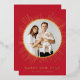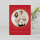 Elegante y moderna tarjeta de vacaciones con tu foto escondida dentro de un marco dorado de Relieve metalizado. Personalice la tarjeta de Año Nuevo con su nombre familiar con letras de Relieve metalizado dorado en un fondo rojo o un color de su elección. La parte posterior de la tarjeta muestra el año y una foto adicional.