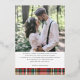 Celebre su primera temporada festiva como pareja casada con nuestra exclusiva tarjeta de Navidad "Casados y Alegres". Mostrando su preciada foto de recién casados en el frente y en la parte posterior, esta tarjeta une maravillosamente la alegría de su unión con la magia de la temporada navideña. Voltee la tarjeta para revelar un diseño de cuadros atemporales, agregando un toque de calidez y tradición a sus sinceros saludos navideños. Perfecta para compartir su historia de amor y alegría navideña con familiares y amigos, esta tarjeta es un recuerdo imprescindible para su primera Navidad juntos.