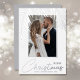 Glamorosas frondas reales de palma de Relieve metalizado sobre fondo blanco resaltan su foto favorita en estas tarjetas de fotos navideñas de Navidad. Feliz Navidad y tus nombres en el fondo en moda plata, oro o rosa oro Relieve metalizado real. Alta definición para la mejor calidad. MÁS COLORES y estilo horizontal realizados para usted en nuestra colección.