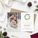 Tarjeta Festiva Con Relieve Metalizado Fotos navideñas merry Greenery Monograma