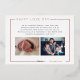 Una delgada frontera enrollada con Feliz Día del Amor en Relieve metalizado alrededor de una foto de paisaje. En la parte trasera de la tarjeta hay dos lugares de fotos adicionales y un texto de saludo.