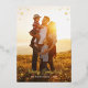 Elegante tarjeta fotográfica de vacaciones cuenta con un retrato familiar de sangre completa con un sencillo marco decorativo de Relieve metalizado dorado de estrellas brillantes. Incluye el saludo "Merry Everything" en escritura clásica que se puede personalizar. La foto y la redacción del paisaje de bonus también se pueden personalizar en la parte posterior de la tarjeta. El color de fondo rojo de la parte posterior se puede modificar para coordinar con las fotos.