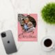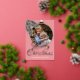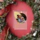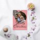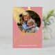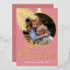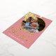 Navidades clásicos contemporáneos tarjetas de felicitación de temporada navideña con agujas de pino blanco colorido patrón de hojas de flores sobre un elegante fondo rosa rubor, con Relieve metalizado de oro real Feliz texto de Navidad. Con opción y espacio para el personalizar del texto, el nombre de la familia y la fecha del año, y añadir una foto personal de su elección en la parte delantera, y un mensaje de bienvenida de la temporada de personalizable en el reverso de la tarjeta.