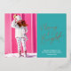 Esta divertida tarjeta de festividad fotográfica incluye una letra a mano de las palabras "Merry & Bright" sobre un fondo colorido. Personaliza tu foto, nombre y mensaje de vacaciones. El color de fondo se puede editar fácilmente en la herramienta de diseño.