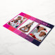 Envíe un florecimiento festivo brillante a sus amigos y familia con esta tarjeta de Navidades de colores. En un fondo audaz de rayas en tonos rosa y violeta, la tarjeta muestra tres de tus fotos favoritas. En la parte superior, el saludo 'Feliz Navidad' está en la tipografía funda inferior con un fresco aspecto retro. Personalizar el texto debajo de las fotos con su(s) nombre(s) y el número del año. Las palabras y los "marcos" que rodean las fotos se resaltan con tu elección de Relieve metalizado de oro, oro o rosa. Se trata de una tarjeta de vacaciones divertida y ruidosa, para que pueda enviar sus deseos de invierno con un estilo moderno.